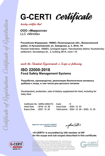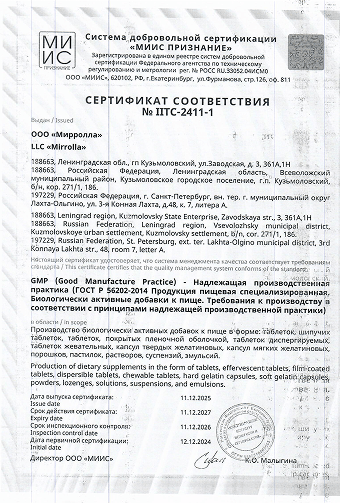 Соответствие эталонным стандартам производства и качества продукции: наличие международных сертификатов GMP и ISO.