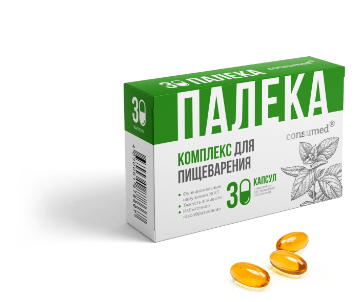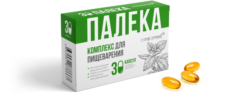 Компоненты «ПАЛЕКИ» способствуют устранению избыточного газообразования, подавлению чувства дискомфорта и тяжести в животе, нормализации процессов пищеварения при функциональных нарушениях ЖКТ.